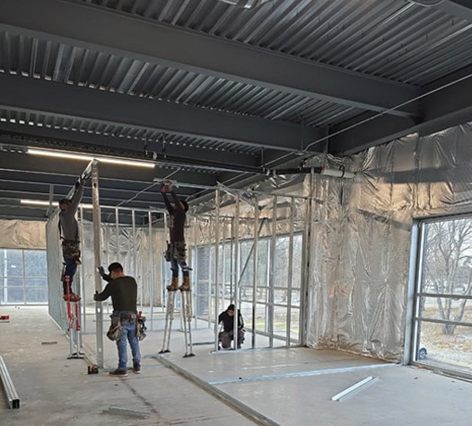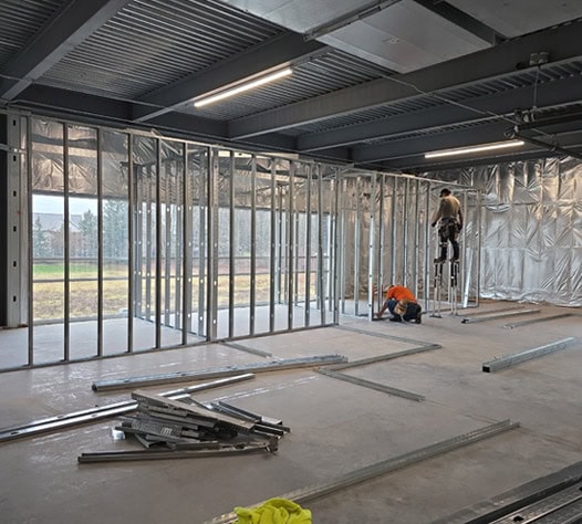 Our skilled framers specialize in assembling interior wall systems and excel in preparing metal studs to secure wall frames and drywall for all framed sections. Interior metal framing provides a robust and long-lasting framework for the building’s interior, offering design flexibility and meeting stringent building codes and regulations.