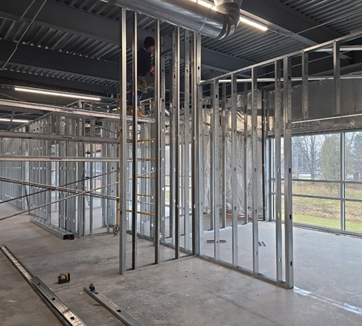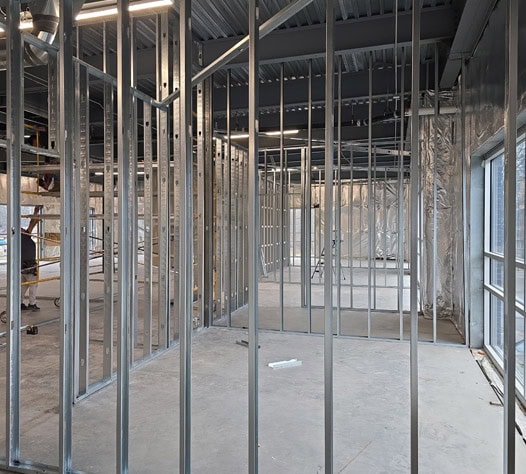 At Gerbetz Drywall Construction, we specialize in the installation of cold-formed light gauge metal stud framing. Our expertise covers both interior and exterior metal framing, as well as load-bearing metal framing for various commercial applications. Exterior Sheathing is also included in our scope of work and services.